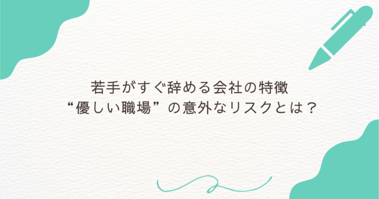 若手がすぐ辞める会社の特徴|“優しい職場”の意外なリスクとは?